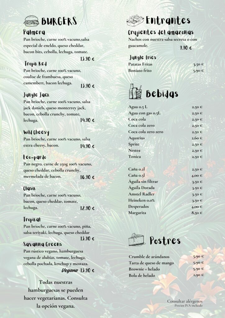 En Tropik Burger, cuidamos cada detalle con mimo y dedicación para ofrecerte una experiencia única. Desde la selección de los ingredientes más frescos y naturales hasta la elaboración artesanal de cada hamburguesa, nuestro compromiso es brindarte un producto auténtico, lleno de sabor y hecho con pasión. Porque creemos que una buena hamburguesa no solo se disfruta, se vive.